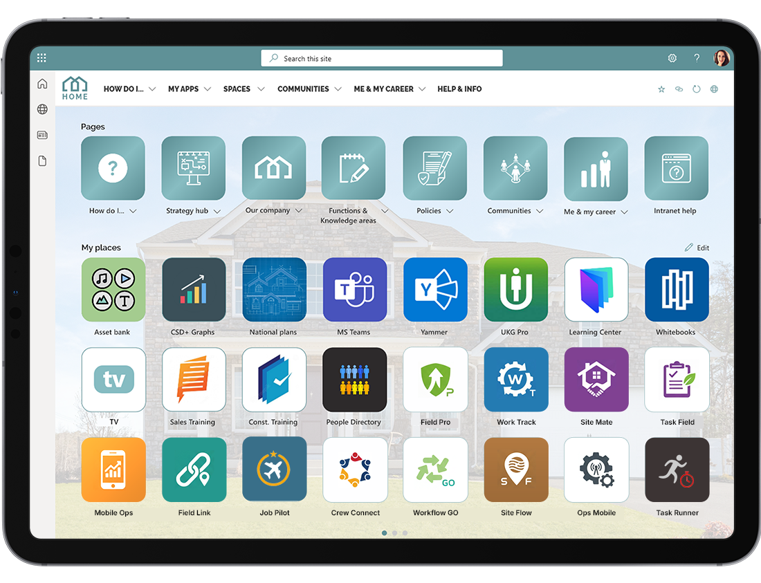 • The My Apps area provides a personalised launch pad to key apps and tools, to help employees complete their day-to-day work and drive productivity.