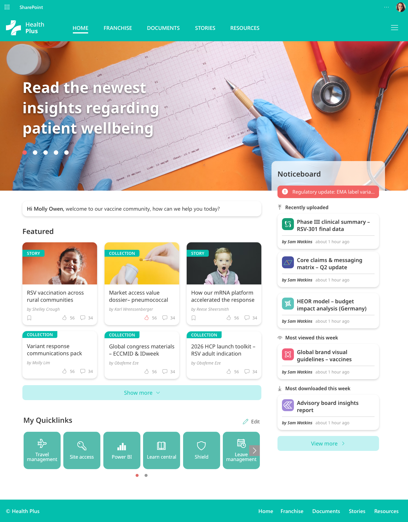 Here are some SharePoint designs and intranet case studies from our work with global brands in leveraging the power of Microsoft 365 to enhance digital workplaces. Our expertise also extends to smaller and medium-sized enterprises, spanning various industries such as B2C, B2B, and the public sector.
